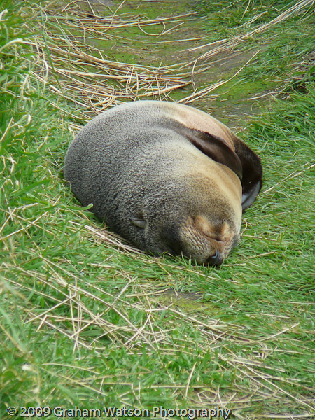 New Zealand fur seal pup {Arctocephalus forsteri} sleeping