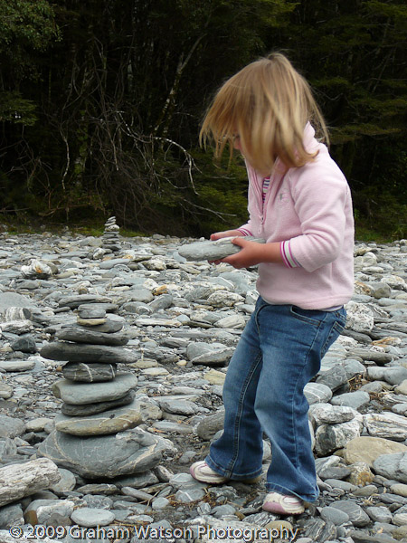 Maya building a cairn at Fantail Falls